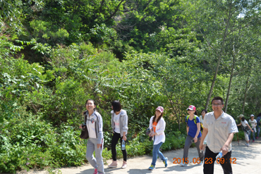 祖山位于秦皇岛青龙县境内,其最高峰天女峰,海拔1428米,当代诗人臧克家老先生曾以“画境诗天”赞之。望着高耸的山峰和蜿蜒上行的台阶,大家纷纷表现出了京华人不惧挑战的精神,年龄最大的内务处管理员老吕壮言要将祖山征服在脚下。